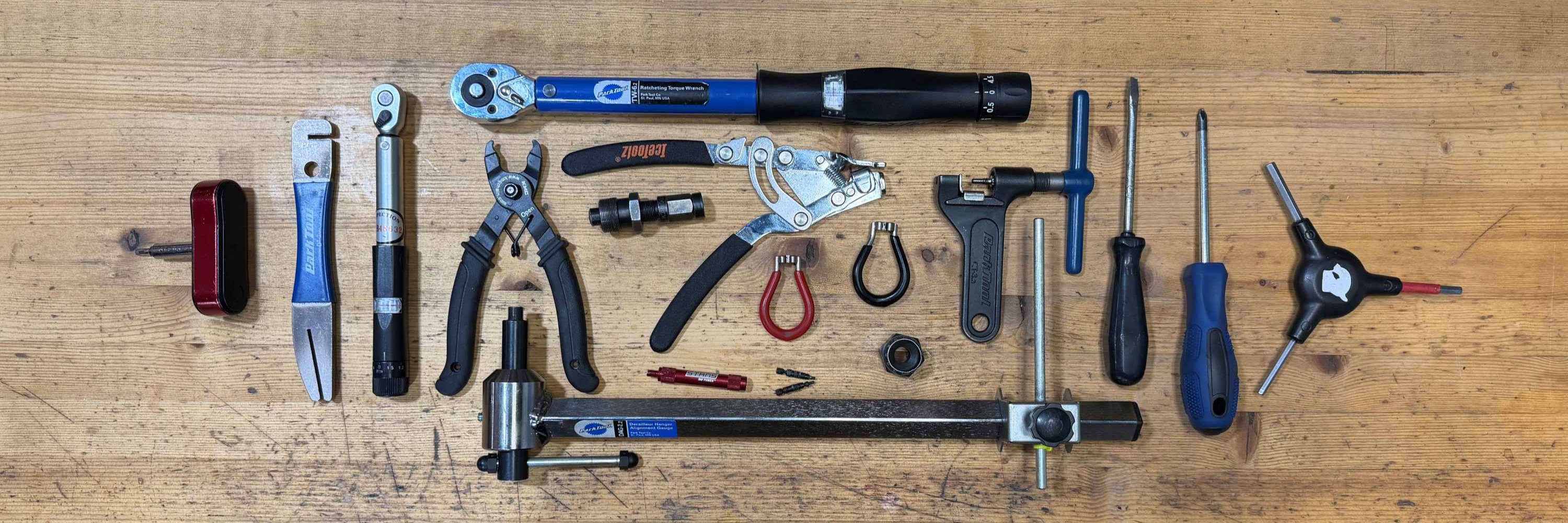 We recommend having a few supplies and tools on hand to do minor repairs at home between tune ups. We have a selection of tools, cleaners, lubricants as well as home mechanic stands in stock. Shop online and pick up in store for free.